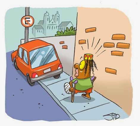 Texto: Charge da pessoa no carro em local proibido.
